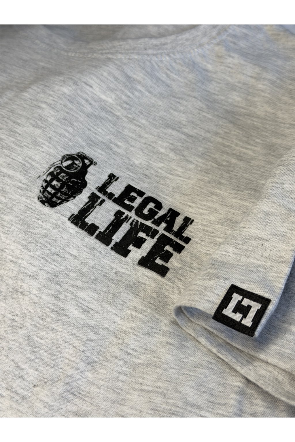 Design je decentní, potisk je vyroben moderní technologií sítotisku. Rukáv zdobí štítek znázorňující logo Legal Life dvěma k sobě otočnými písmeny LL, dole u pasu je další větší štítek s logem a baseballovou pálkou, tyto vychytávky zvedají triko na jiný level, každý štítek je vyrobený a ručně našitý u nás v ČR stejně jako potisky. Triko je velice kvalitní, při výběru textilu pro naší značku Legal Life jsme si dali velice záležet.