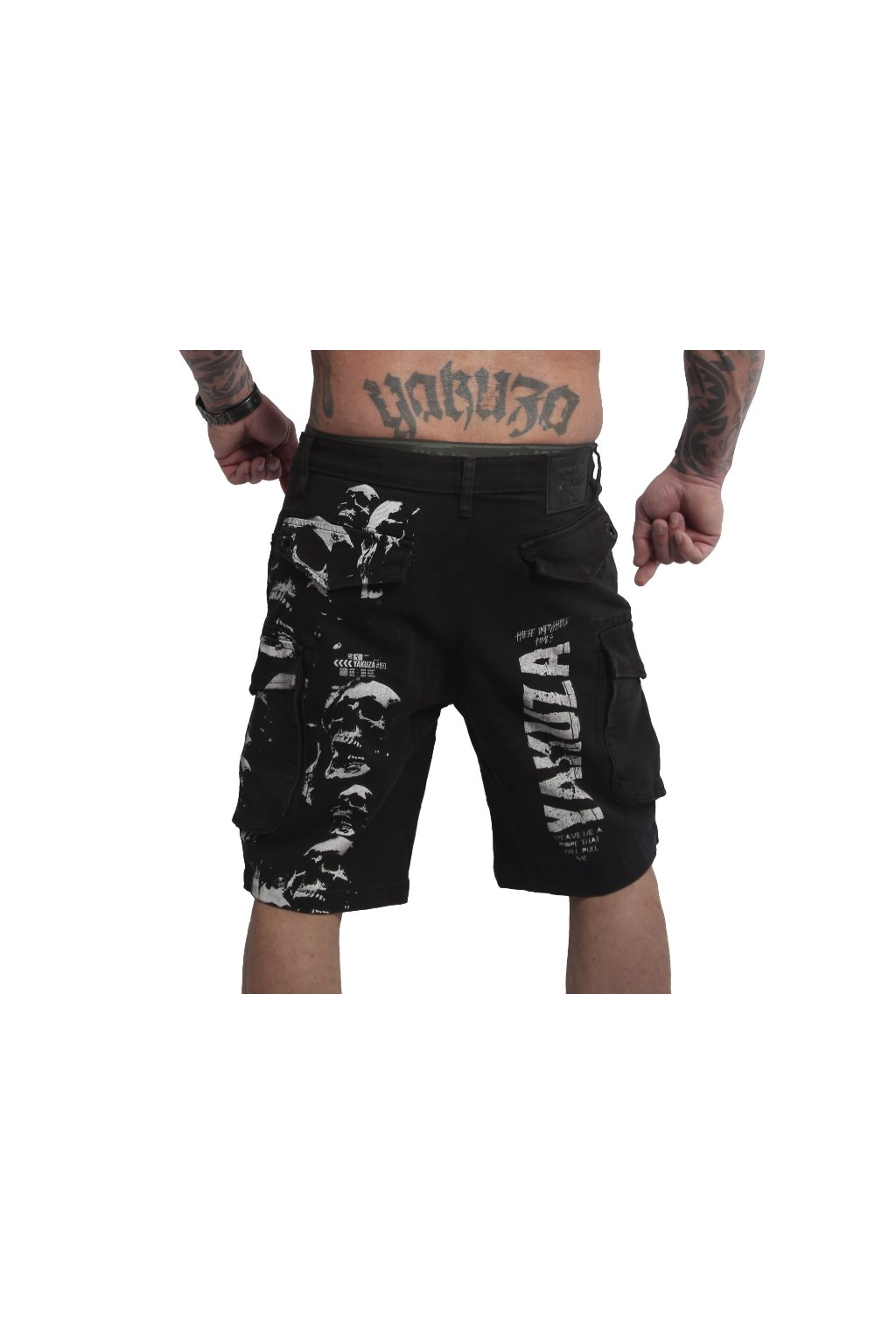 Pánské cargo kraťasy YAKUZA ROPE TIME. V těchto pohodlných klasických cargo kraťasech se budete cítit pohodlně: Ne příliš úzké, ne příliš volné, tak akorát. Tyto kraťasy dodají vašemu stylu drsný nádech díky sedmi kapsám, zapínání na knoflíky a poutkům na pásek. Kraťasy jsou zdobeny vintage potiskem, vyraženým logem Yakuza na přední kapse a logem nad zadní kapsou. Sledujte prosím níže uvedené specifikace velikostí a pokyny k praní.