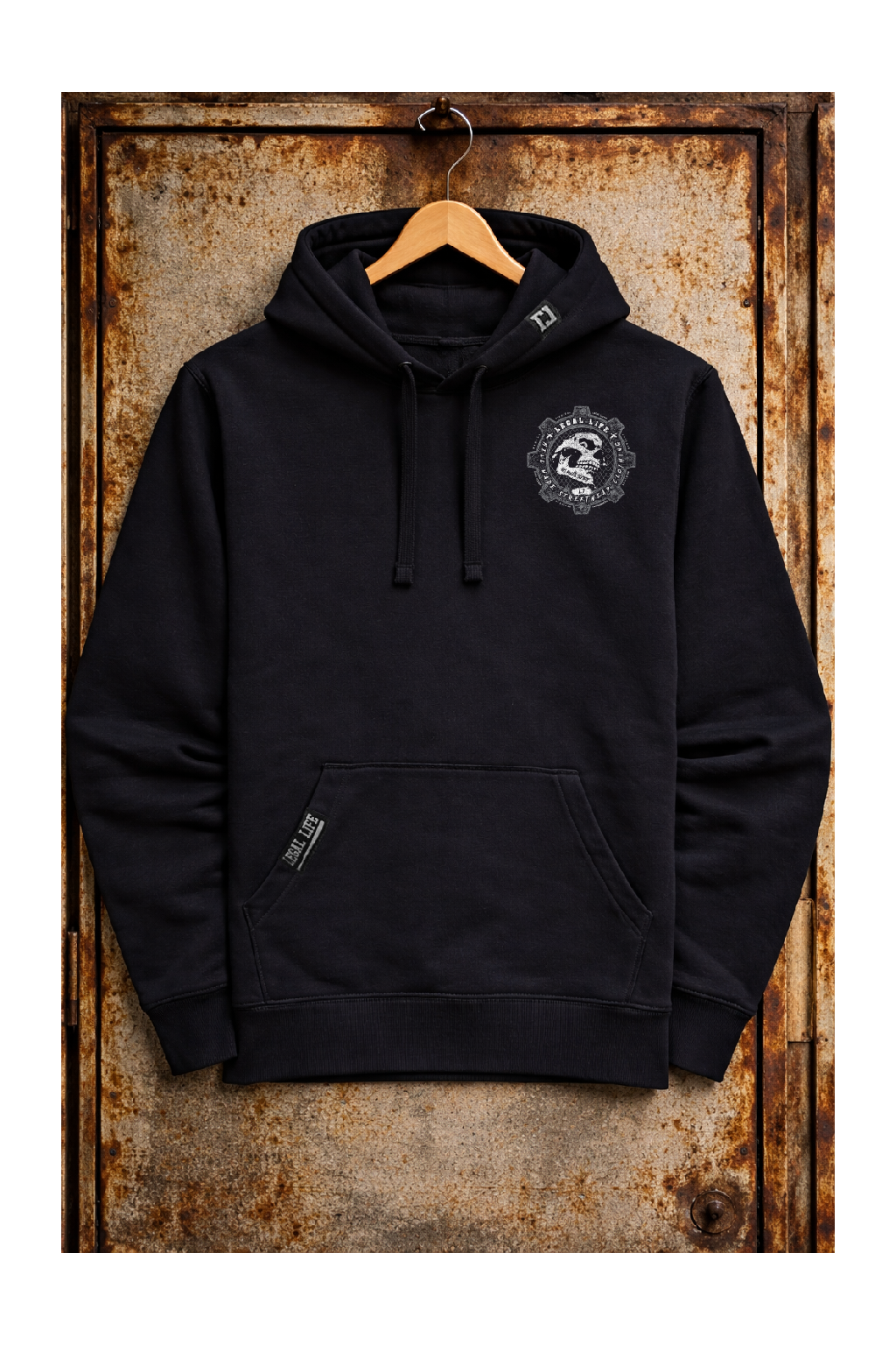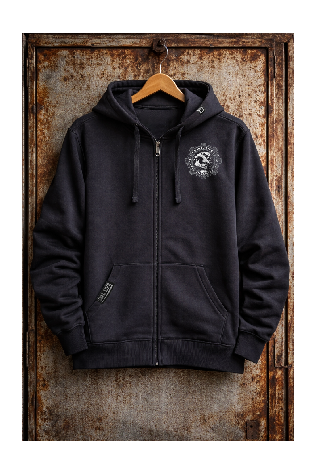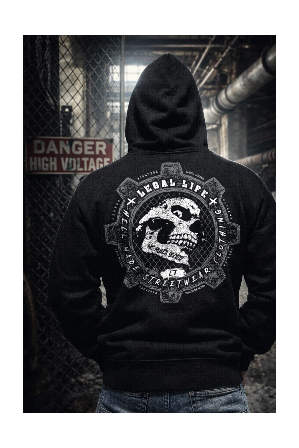 Kapuci zdobí štítek znázorňující logo Legal Life dvěma k sobě otočnými písmeny LL, dole na kapse je další větší štítek s logem a baseballovou pálkou, tyto vychytávky zvedají mikinu na jiný level, každý štítek je vyrobený a ručně našitý u nás v ČR stejně jako potisky. Mikina je velice kvalitní, při výběru textilu pro naší značku Legal Life jsme si dali velice záležet.