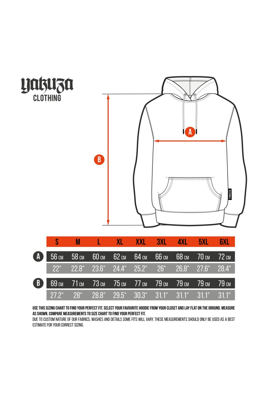 YAKUZA CRUSHER Základní pánská mikina s kapucí. Jen stěží najdete klasičtější kousek šatníku než tuto základní mikinu s logem. Je to ideální kousek na vrstvení a má standardní střih - ani příliš úzký, ani příliš volný, prostě tak akorát. Triko je samozřejmě doplněno logem Yakuza na bočním švu a gumou nad lemem. Sledujte prosím níže uvedené specifikace velikostí a pokyny k praní.