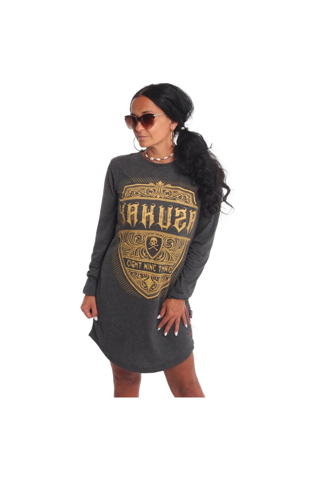 Yakuza dámské šaty Plain Longsleeve 22113 anthracite melange
