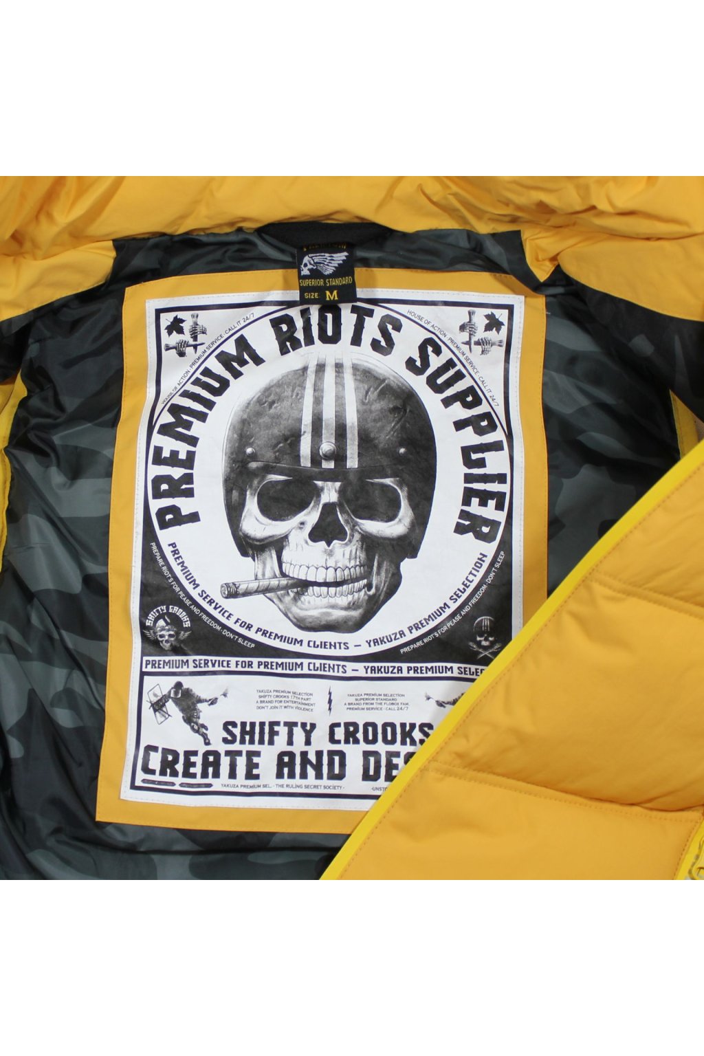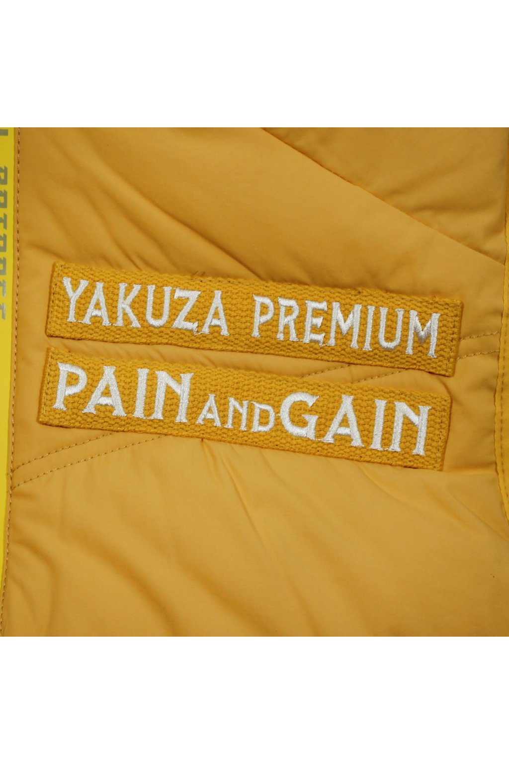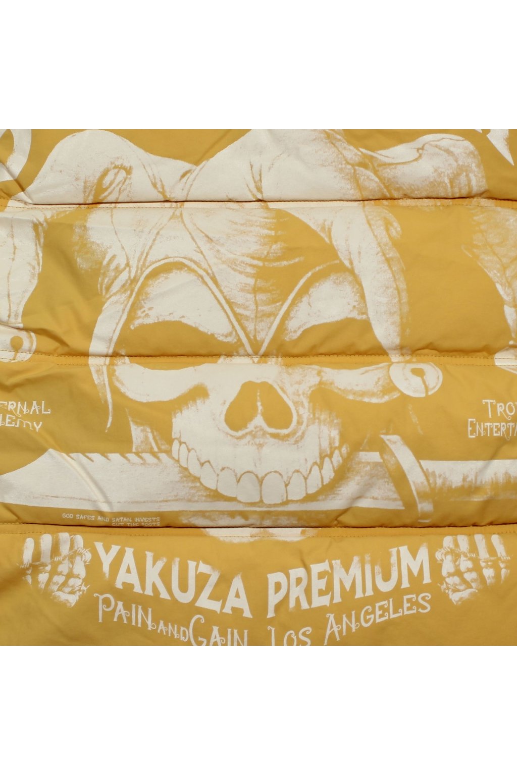 Limitovaná edice vesty 3966 ve žluté barvě od Yakuza Premium pro muže. Tato prošívaná vesta vás nejen zahřeje, ale také vypadá neuvěřitelně stylově. Má odnímatelnou kapuci, dvojitou nášivku na levé straně hrudi a dvě přední kapsy. Na zadní straně je velký potisk s harlekýnem. Tuto prošívanou vestu dělají výjimečnou potištěné zipy. Vesta má poměrně volný střih a odpovídá velikosti.